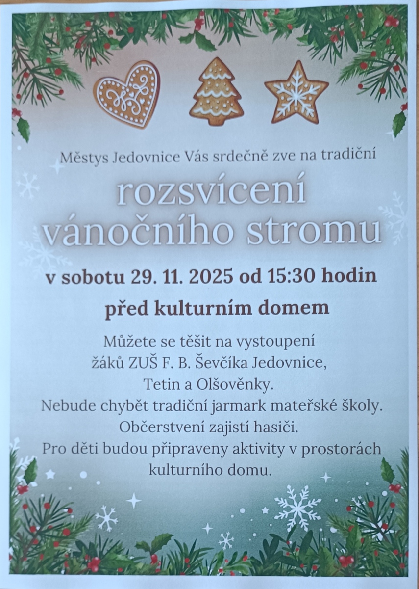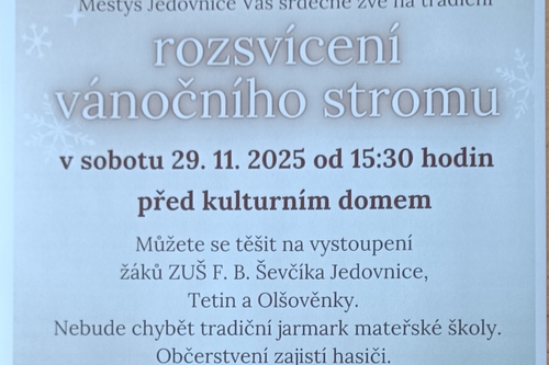 - V letošním roce zahajujeme 15. ROČNÍK ADVENTNÍHO PRODEJE při příležitosti rozsvěcování vánočního stromu v Jedovnicích. Poprvé tomu tak bylo 27. 11. 2010 a prodej se tenkrát odehrával před budovou městyse.